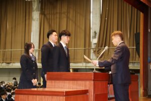 2月26日(木)、卒業する3年生を対象に表彰状授与式が行われました。